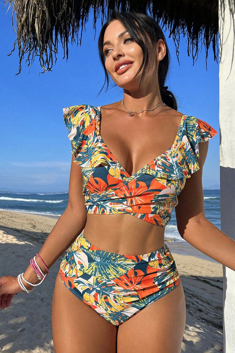 Floral Print Glamorous Ruffles Front Wrap Bikini